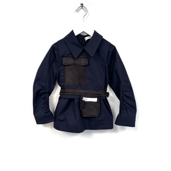 front detail with connected belt and pockets